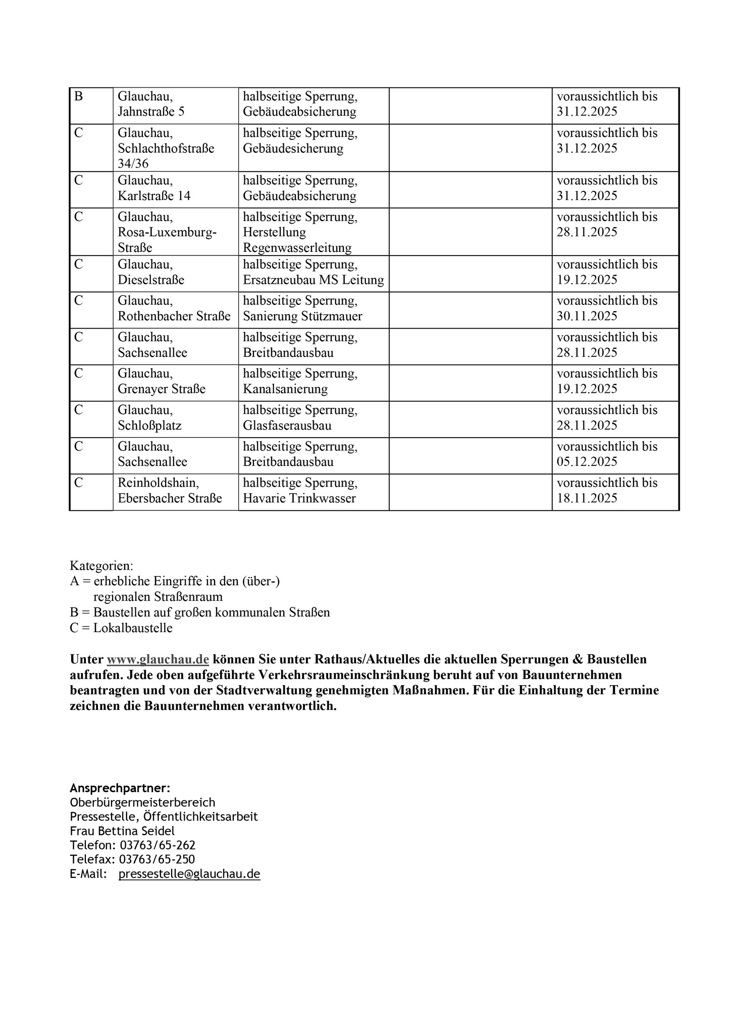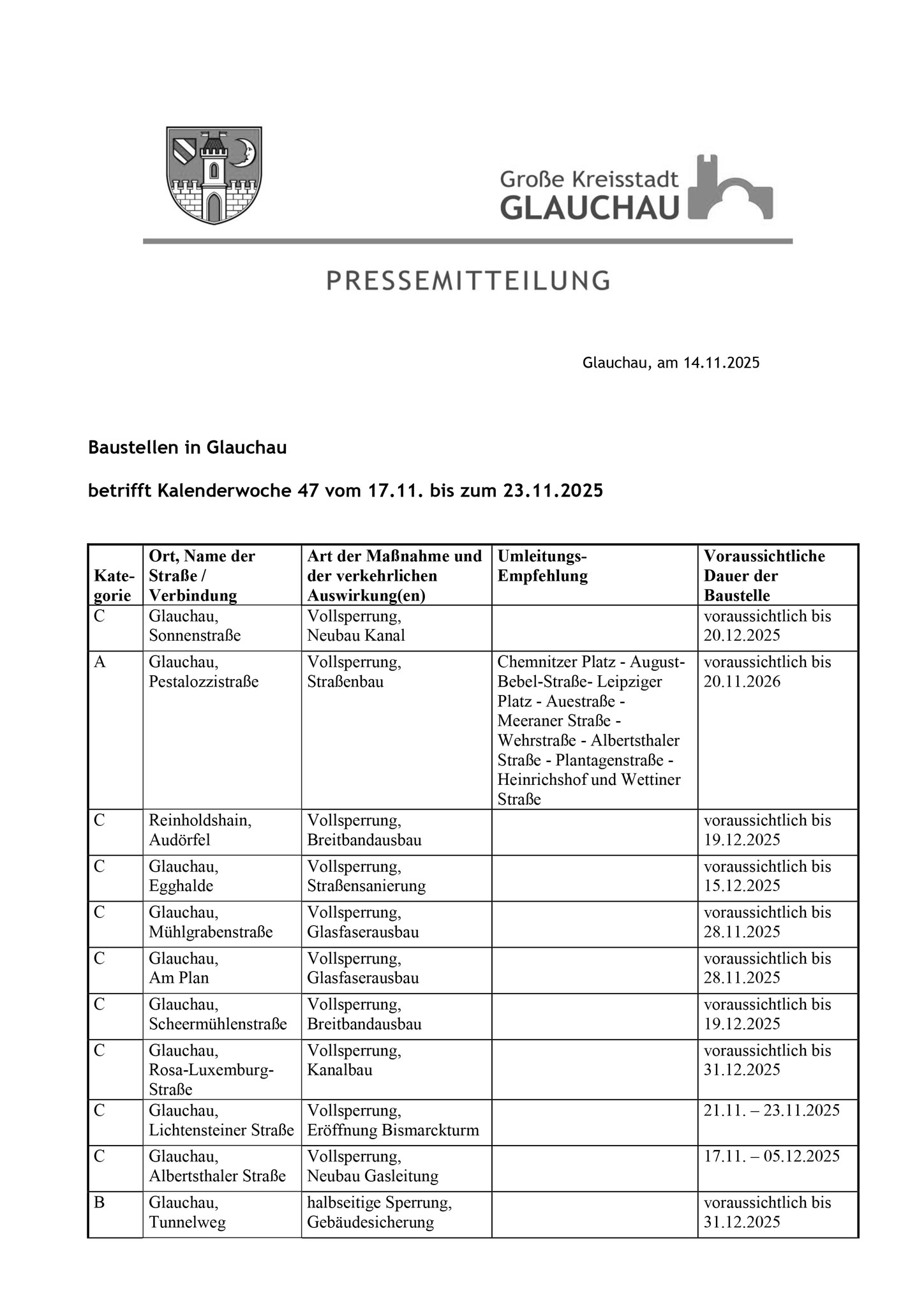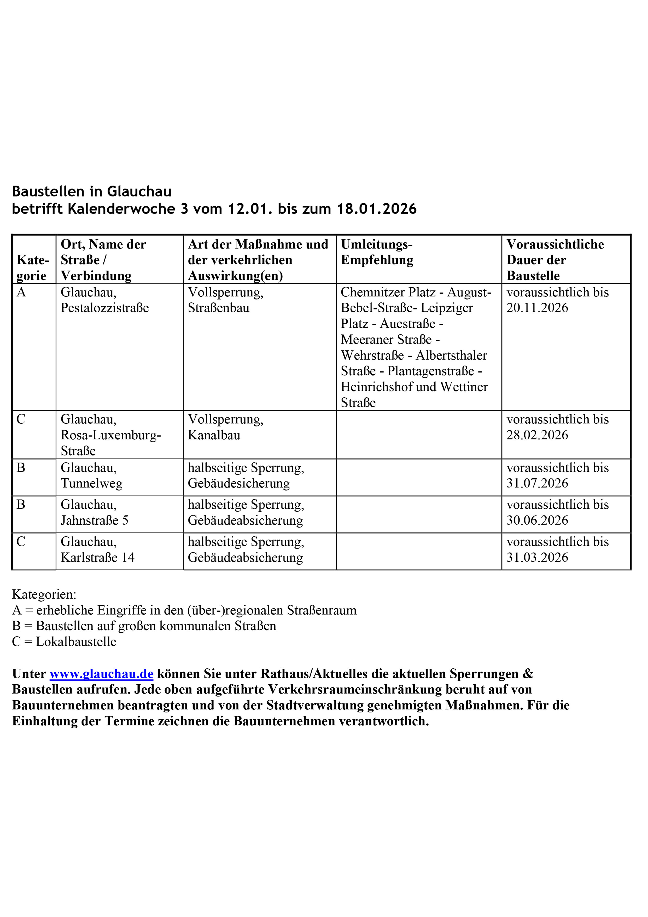 Aktuelle Verkehrsbehinderungen für Glauchau und Umgebung